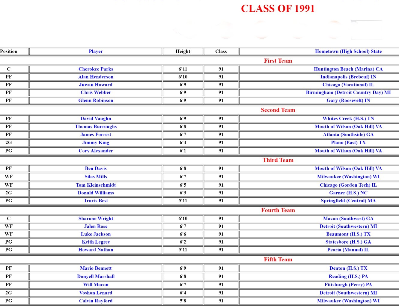 Chris Webber: c/o 1991 |